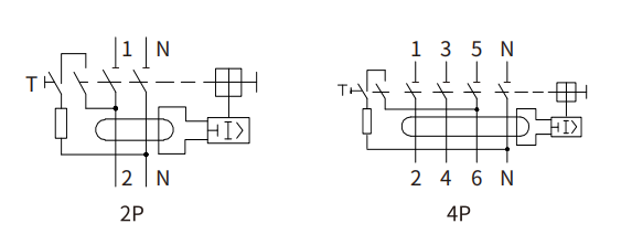 - دو پل (2P) — برای مدار تکفاز (L + N).