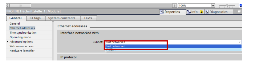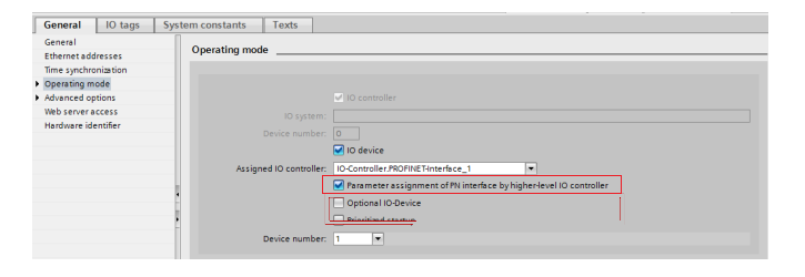 از گزینهی "Parameter assignment of PN interface by higher-level IO controller"