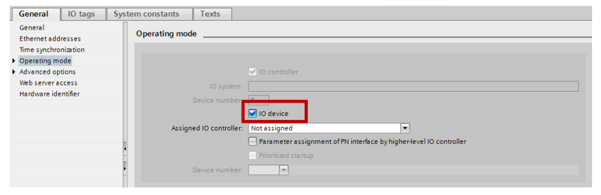 با این کار، CPU 1214C از حالت IO Controller به حالت I-Device (دستگاه هوشمند تحت کنترل یک کنترلر بالادستی) تغییر میکند و آماده میشود تا در پروژه بهعنوان زیرسیستم قابلپیکربندی در شبکه PROFINET عمل کند.