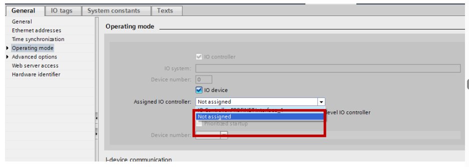 - هر دو کنترلر (IO Controller و I-Device) را به ترتیب در بخش Project tree انتخاب کنید،