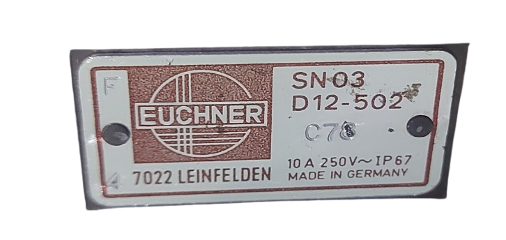 میکروسوئیچ SN03 D12-502 از سری SN شرکت Euchner با فاصله پیستون ۱۲ میلیمتر است و در محفظهای عمودی و جمعوجور ساخته شده است. دارای عملکرد snap action با یک کنتاکت باز (NO) و یک کنتاکت بسته (NC) در هر عنصر سوئیچ است.